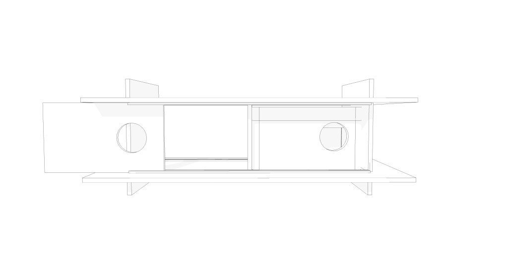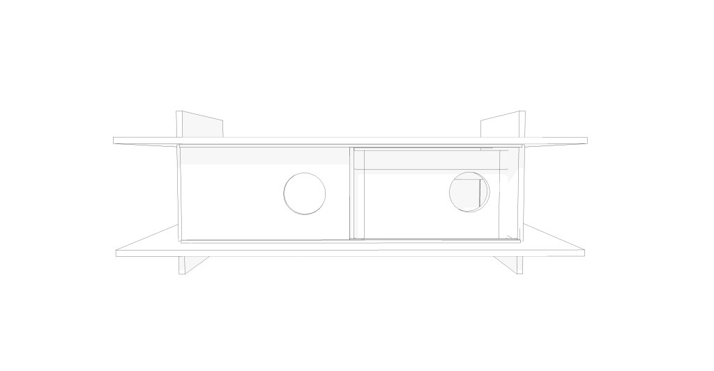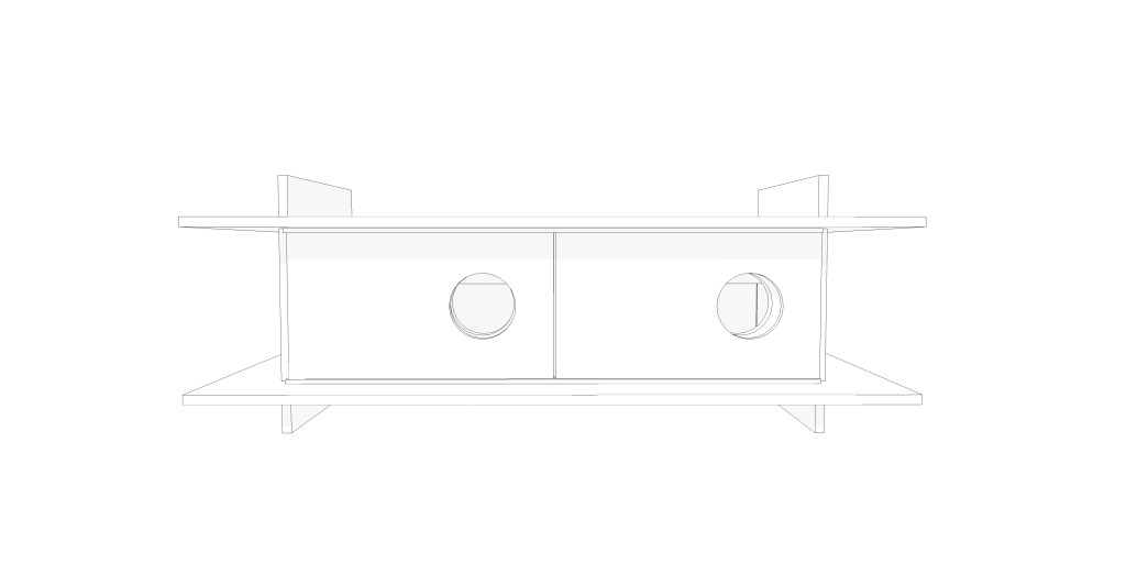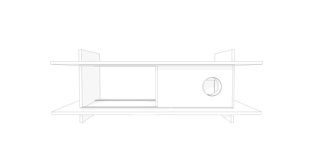 W ramach warsztatów podjęto próbę stworzenia uniwersalnego schronienia, które mogłoby powstać w każdej przestrzeni. Domek wykonany ze sklejki szalunkowej składa się z kilku prostych części, które łączą się na pióro-wpust, dzięki czemu złożenie konstrukcji nie wymaga gwoździ ani kleju.