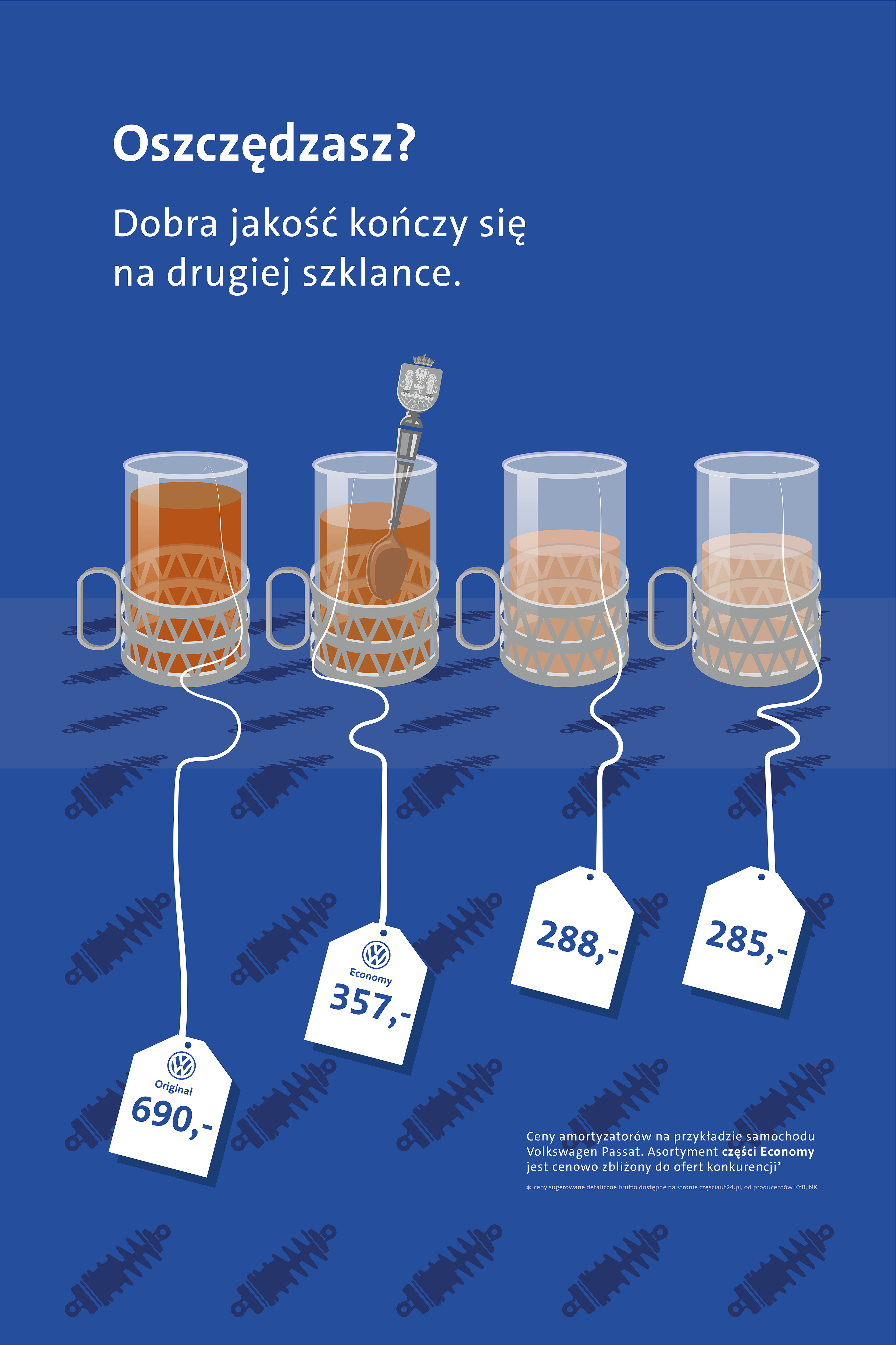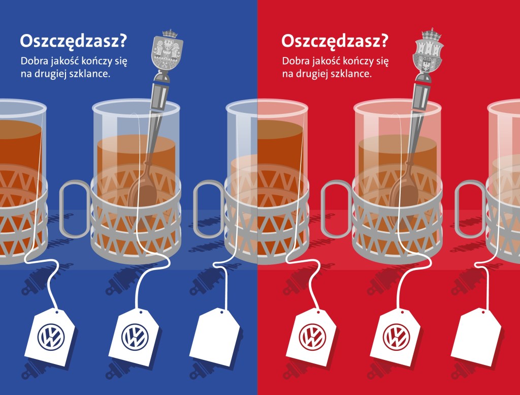 Herby Poznania i Krakowa widoczne są w srebrach rodowych – łyżeczkach mieszających herbatę, której dobra jakość kończy się na drugiej szklance – czyli częściach wymiennych Economy autoryzowanych przez firmę Volkswagen.